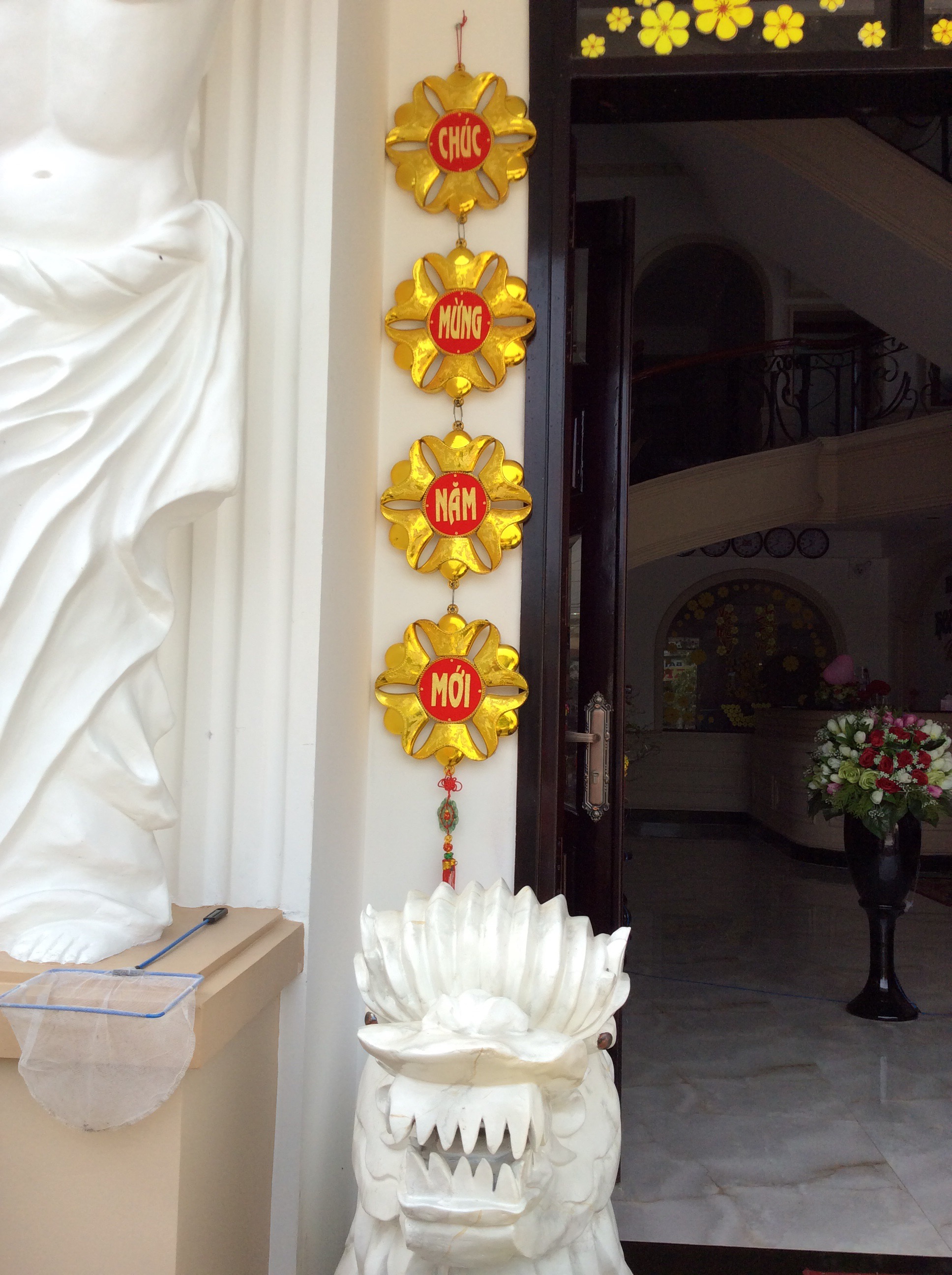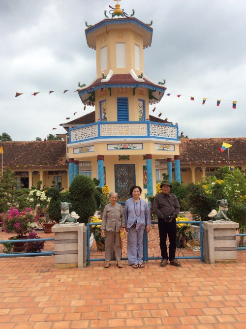 However, I didn’t know that this is one of the stops on the South-to-North bus tour for foreigners. The first white guy I saw wore a tee that said, “I’m silently correcting your grammar.” I said, “I am too.” He gave me a confused look, partly because he was surprised to hear English coming out of my mouth. “Your shirt,” I said. He laughed. I said, “We word nerds have to stick together.” I saw him later after we made the rounds, and we chatted a little. He was with the other white people….lots of them! I wanted to take a picture with some. I mean, here they were, snapping photos of the masses of Cao Đaists in their white áo dài.