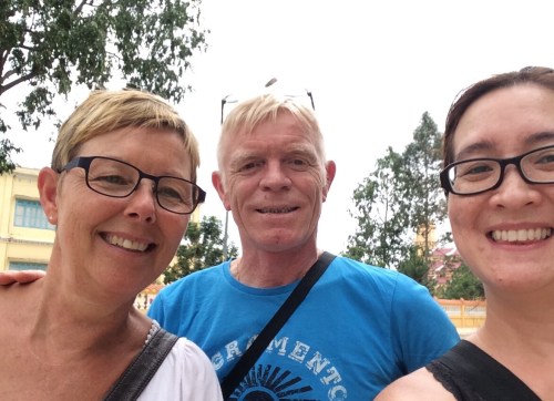 So I went up to this older white couple and asked them if they spoke English. With a surprising tone (I’m sure they never thought anyone in Vietnam would be asking them that question), they said “Yes?” And then I asked to take a pic with them. I said I wanted to take a picture with white people because I’m half white and happy to see them. They gave me a hesitant (and kinda offended) “Okay,” and I asked them where they were from. They said Holland. I told them, “Trust me, it’s okay because this is so postcolonial,” as I took the selfie. My mom gave me a look that said, “What you do?!” I grabbed her arm and told the couple, “This is my mom. Isn’t she cute?” They chuckled and quickly boarded their tour bus.